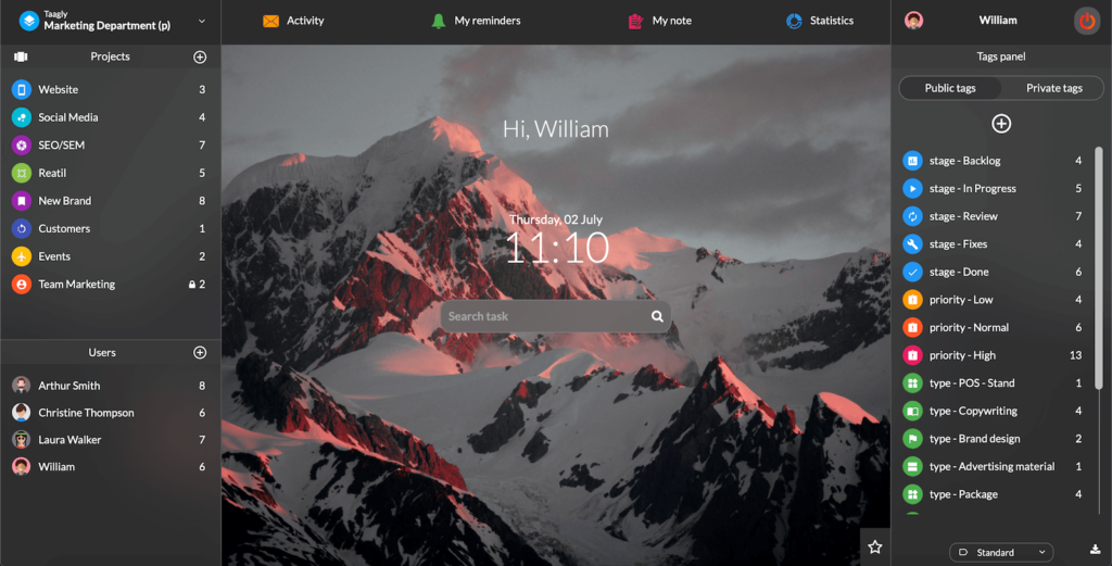 Intuicyjny interfejs pozwala szybko opanować mnogość funkcji programu. Narzędzie dobrze służy zespołom, których poszczególni członkowie mają odmienny zakres pracy. Z Tagia planuje się sprinty, tworzy plansze Kanban, zarządza ryzykiem, analizuje wykres spalania.